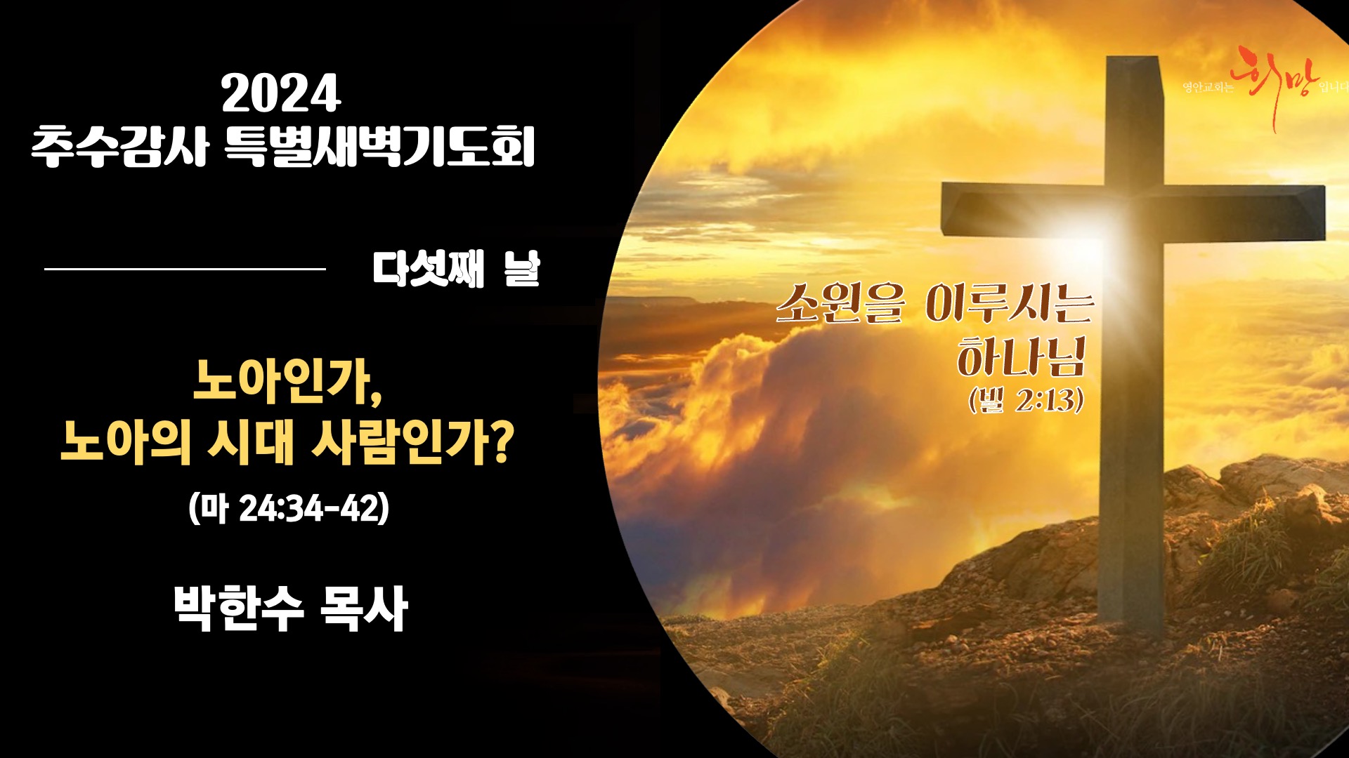 241101 추수감사절 특별새벽기도회 - 노아인가, 노아의 시대 사람인가 (마 24:34-42) 박한수 목사