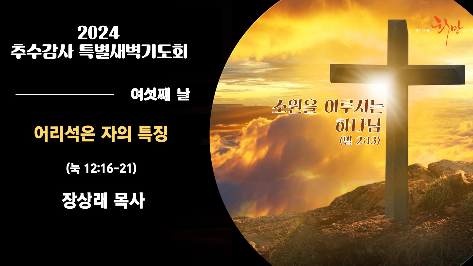 2024년 3월 30일 고난주간 특별새벽기도회- 포로의 원인과 해결책(렘 25:9)_장상래 목사