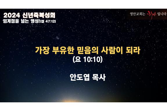 2024년 1월 15일_신년부흥성회 새벽_"가장 부유한 믿음의 사람이 되라" 안도엽 목사